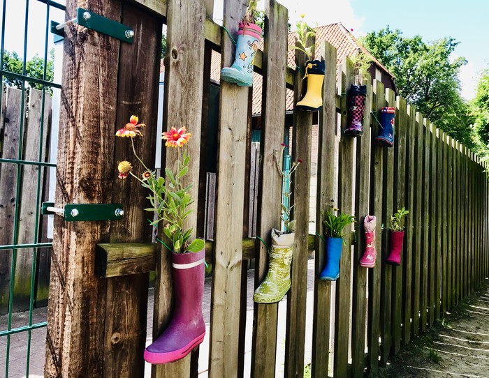 Das Außengelände verläuft um das Gebäude herum. Es ist mit Spielgeräten wie einer Nestschaukel, dem Weidentunnel, einer Schaukel, einer Wippe und einem großen Klettergerüst ausgestattet. Zusätzlich laden Sandflächen zum Buddeln und Spielen ein. Weidentipis schaffen einen Anreiz zum Rollenspiel. Im hinteren Teil unseres Außengeländes befindet sich eine Bobby Car-Rennstrecke.